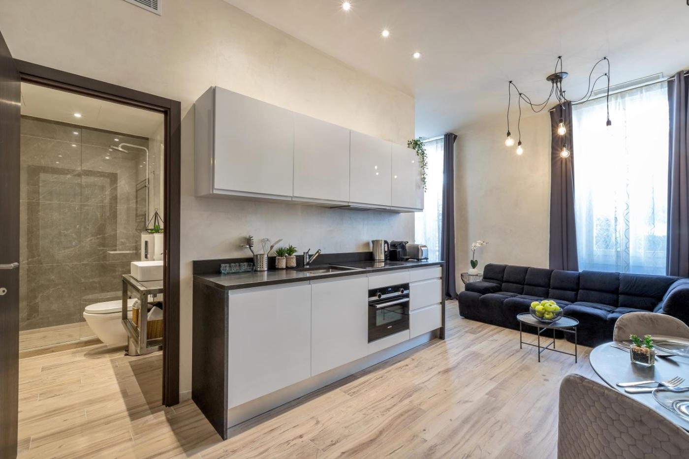 ZOLA -Two-Bedroom Apartment with Sofa Bed. The well-equipped kitchen features a stovetop, a refrigerator, a dishwasher and kitchenware. The spacious twindouble room provides air conditioning, a washing machine, a balcony with city views as well as a private bathroom featuring a walk-in shower.