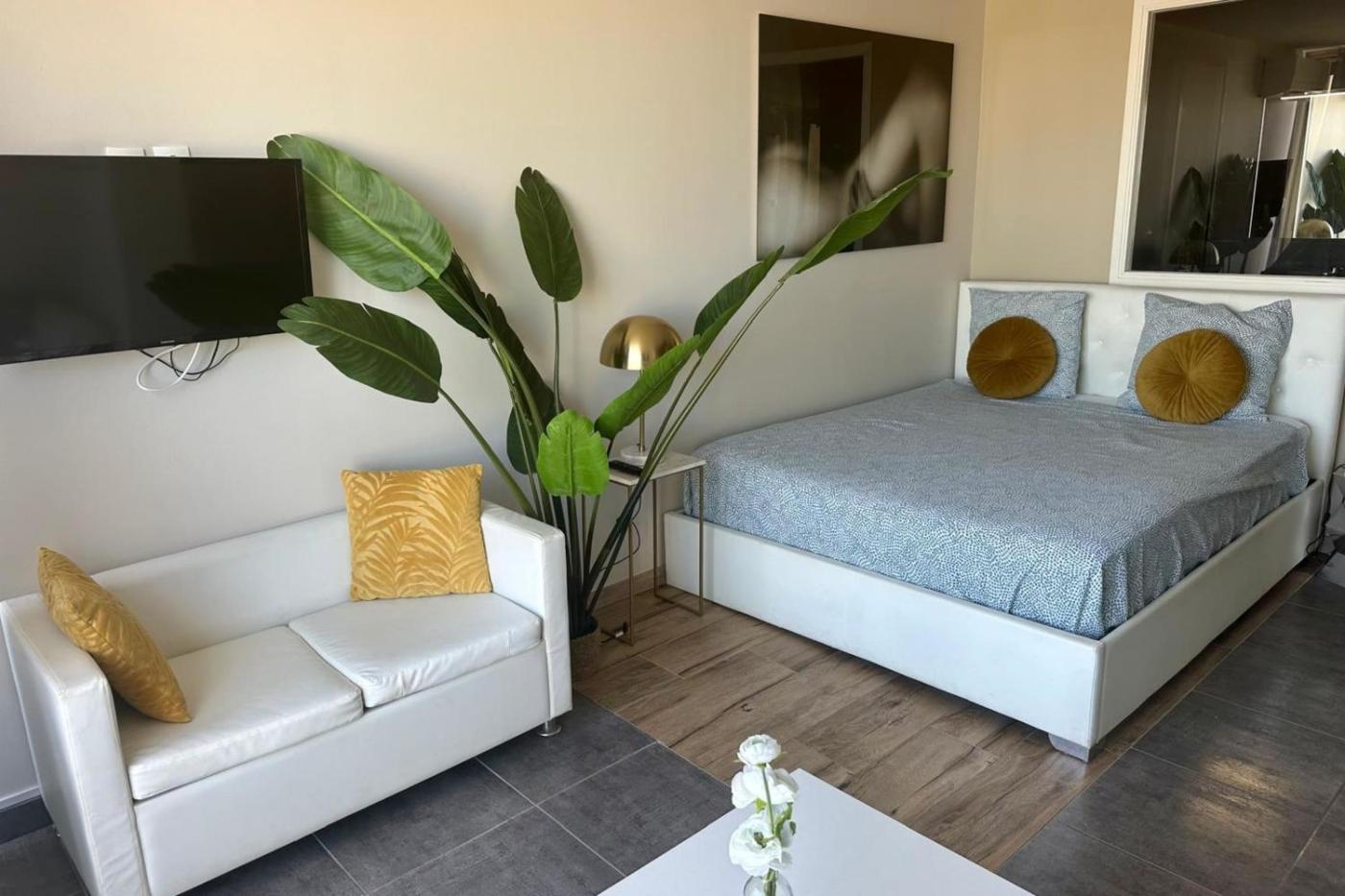 Apartment. The well-fitted kitchen features a refrigerator, a dishwasher, kitchenware and a microwave. The studio offers air conditioning, a washing machine, a terrace with sea views as well as a private bathroom featuring a shower. The unit offers 1 bed.