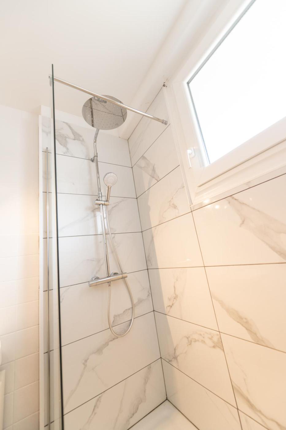 This recently renovated apartment has a balcony, a living room and a flat-screen TV. The kitchen has a microwave, a stovetop and kitchenware, as well as coffee machine and kettle. At the apartment, there is a dressing room for guests to change in.